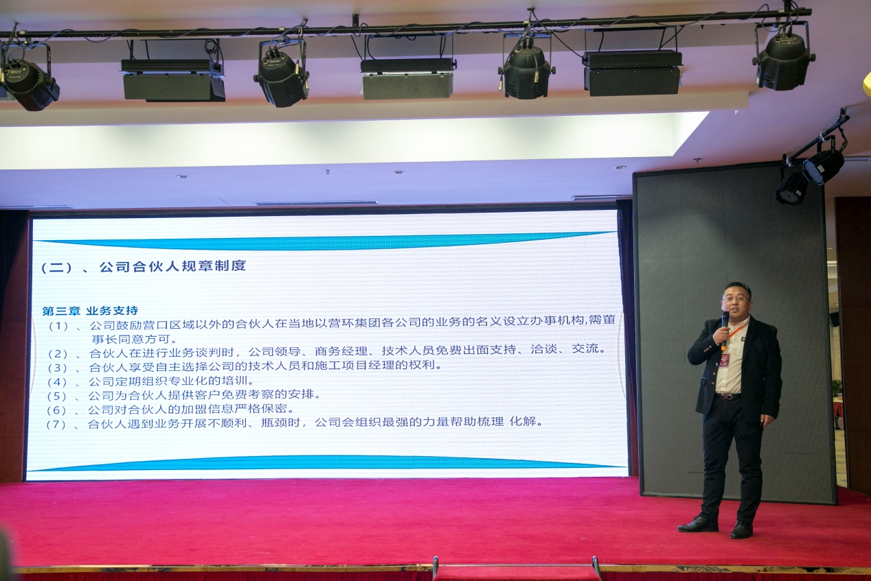 遼寧聚實(shí)環(huán)保科技有限公司盛曉峰總經(jīng)理做《如何實(shí)現(xiàn)收益衍生》報(bào)告,分析現(xiàn)今國(guó)際,國(guó)內(nèi)的經(jīng)濟(jì)形勢(shì)、現(xiàn)環(huán)保行業(yè)及環(huán)保領(lǐng)域現(xiàn)狀、及給予合伙人的各項(xiàng)政策支持和保障。